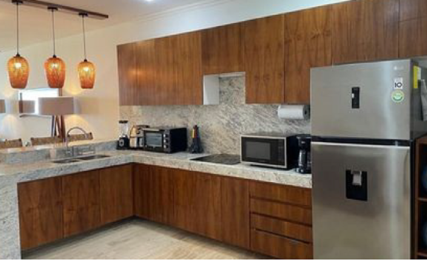 • Áreas Sociales: Sala y comedor de concepto abierto integrados a la cocina, maximizando las vistas al océano.
